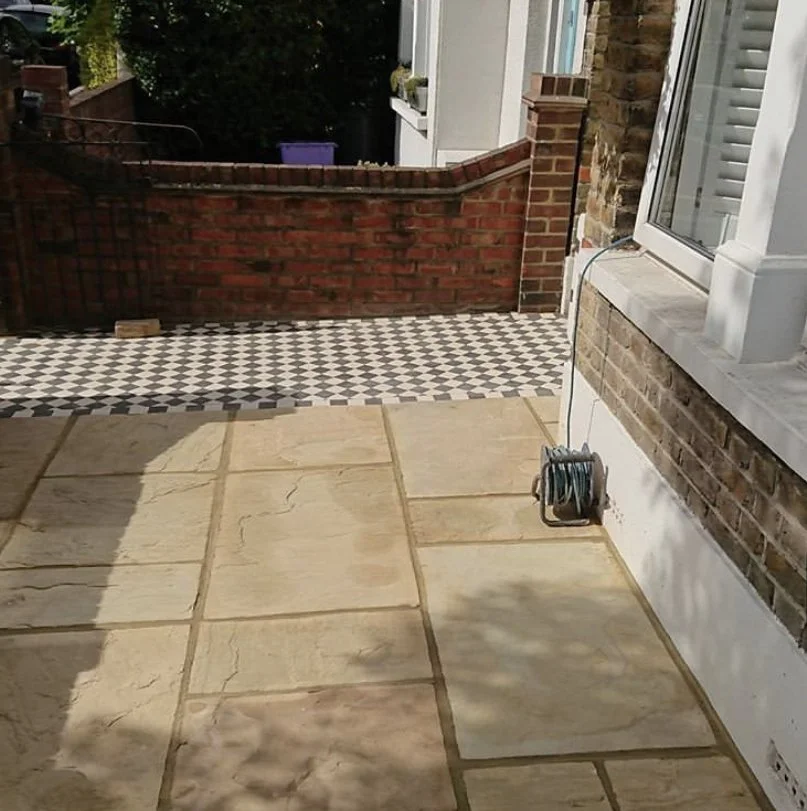 Full landscaping project including construction of new sleeper walls, new patio, planting and new outbiuldings.